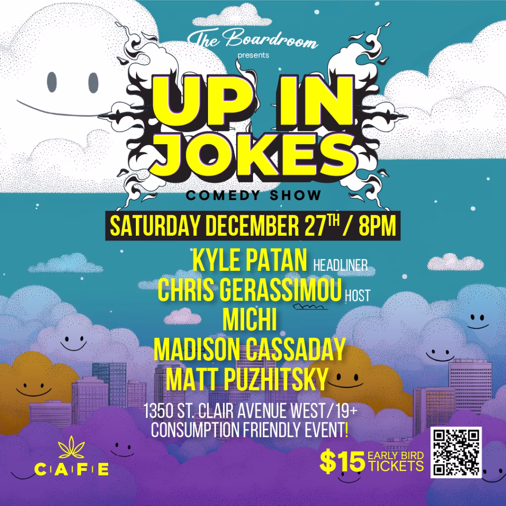 Up in Jokes Toronto Comedy Show is taking comedy to a higher level! Featuring a lineup of hilarious comedians who know how to bring the laughs, this show promises non-stop fun, clever punchlines, and a night filled with joy. Whether you’re flying high or keeping it chill, this comedy show has got you covered! *No outside food or drinks allowed*