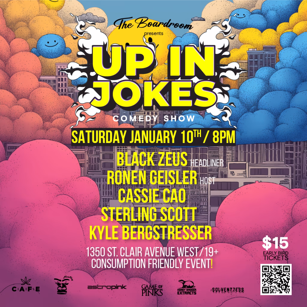 Up in Jokes Toronto Comedy Show is taking comedy to a higher level! Featuring a lineup of hilarious comedians who know how to bring the laughs, this show promises non-stop fun, clever punchlines, and a night filled with joy. Whether you’re flying high or keeping it chill, this comedy show has got you covered! *No outside food or drinks allowed*
