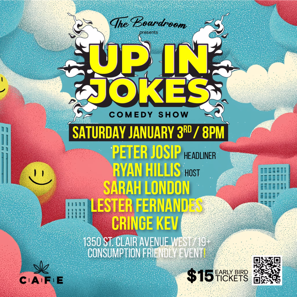 Up in Jokes Toronto Comedy Show is taking comedy to a higher level! Featuring a lineup of hilarious comedians who know how to bring the laughs, this show promises non-stop fun, clever punchlines, and a night filled with joy. Whether you’re flying high or keeping it chill, this comedy show has got you covered!  *No outside food or drinks allowed*